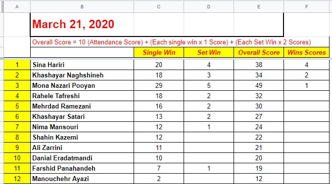 نوشته پیشینتورنمنت 14 مارچ 2020نوشته پسینتورنمنت اول مارچ 2020