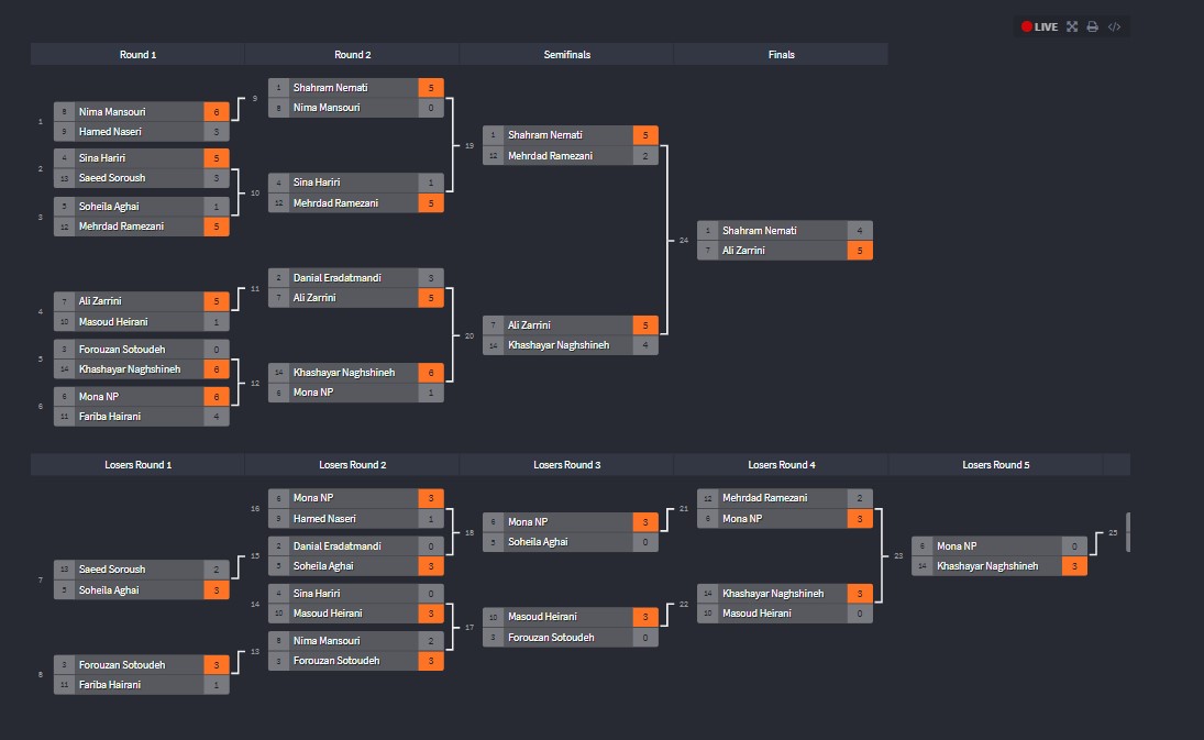 بازی فینال نفرات اول و دوم تورنمنت پنجم اپریل 2020: