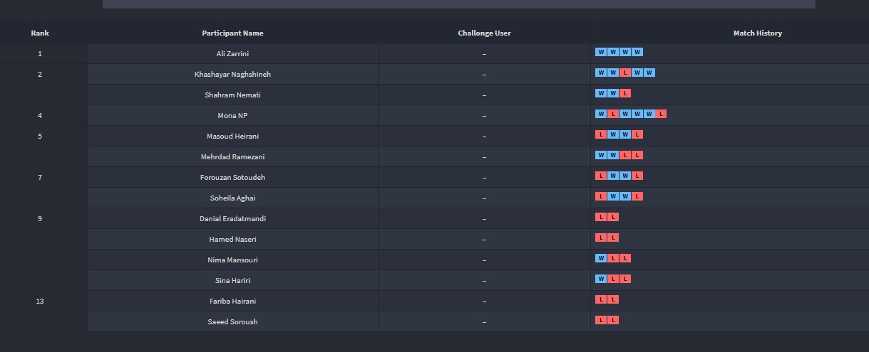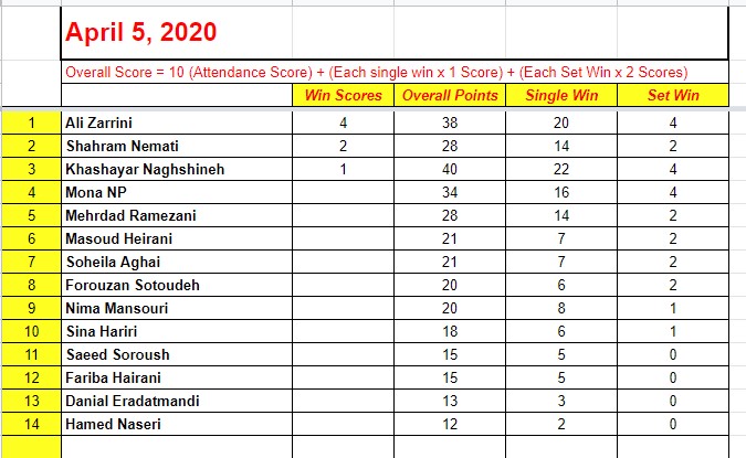 مسابقه فینال نفرات اول و دوم تورنمنت پنجم اپریل 2020: