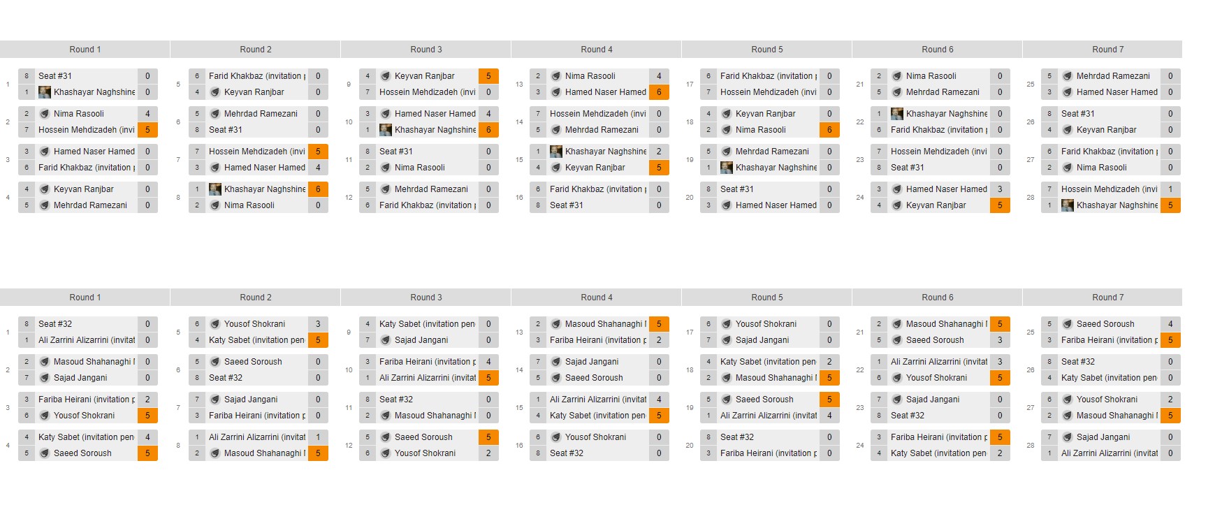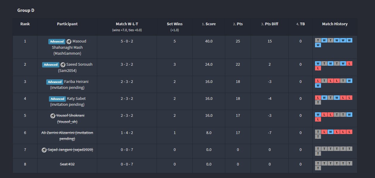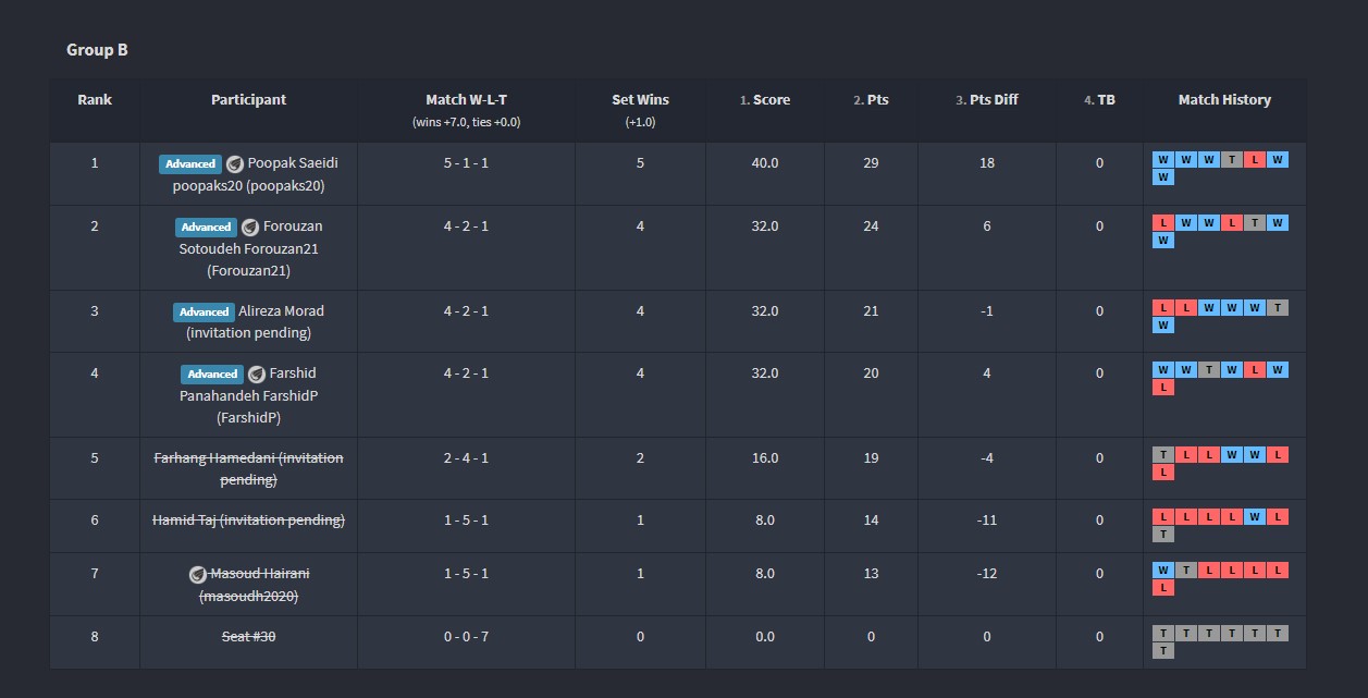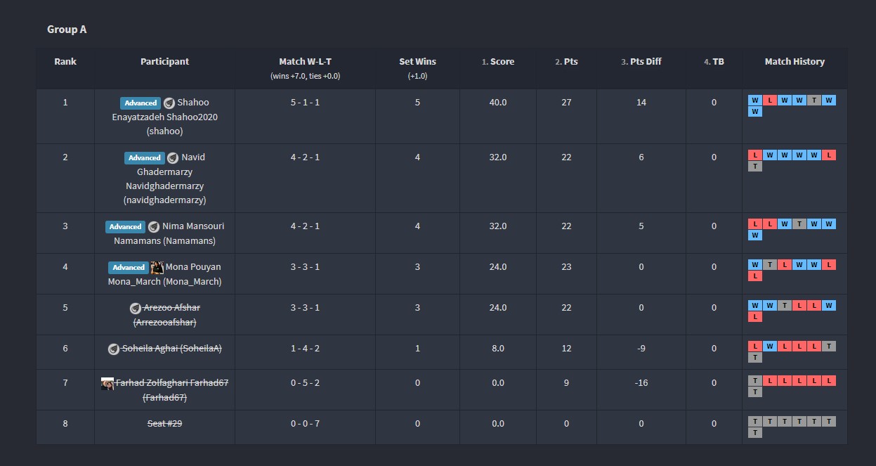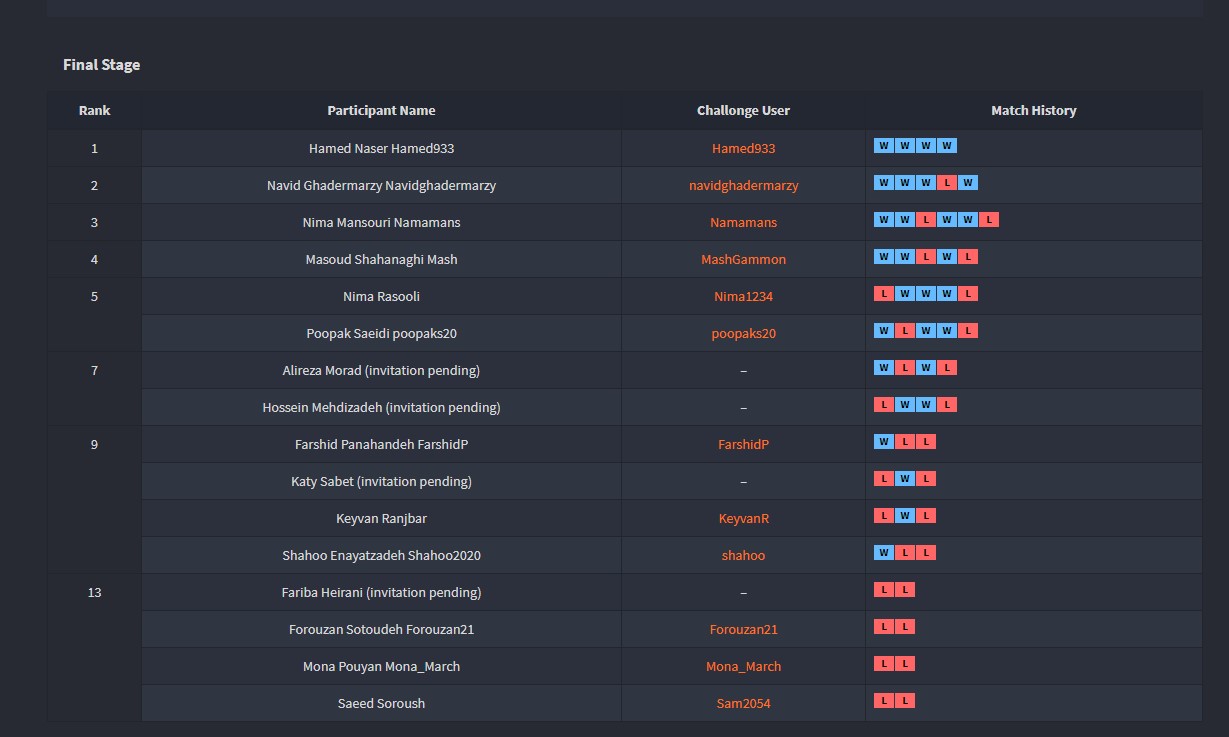 تبریک صمیمانه ی ما تقدیم به تمام شرکت کنندگان تورنمنت نهم که در طول 95 مسابقه (66 مسابقه مقدماتی و 29 مسابقه ی نهایی) در طول یک هفته بسیار خوش درخشیدند.