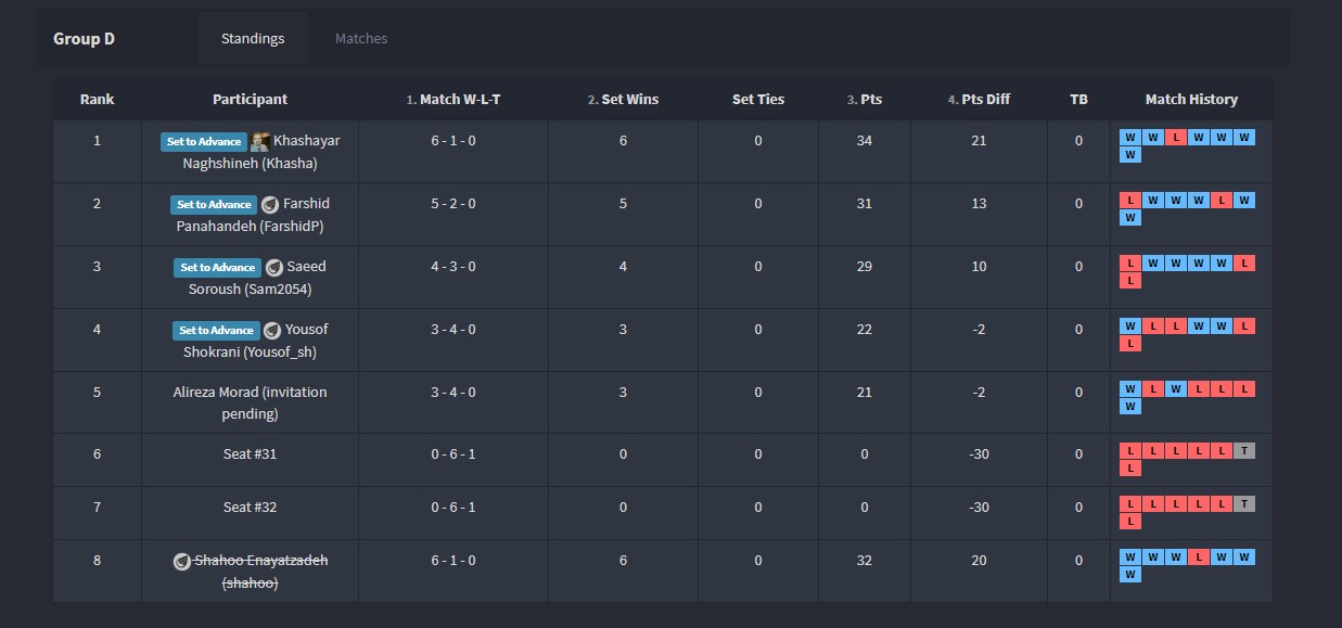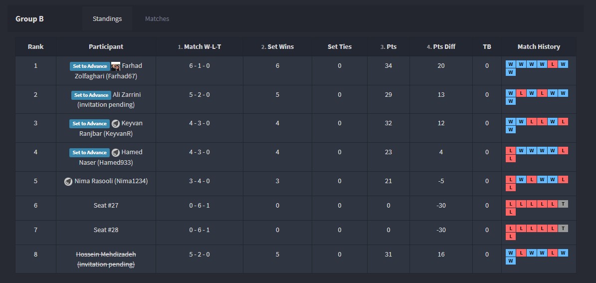 نهایتا با نظر داوران روش قابل انتخاب برای برگزاری بررسی و پیش از آغاز رده های نهایی تورنمنت به اطلاع همه خواهد رسید.